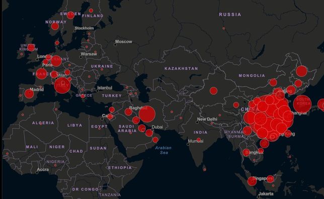 Na mapie można zobaczyć, gdzie znajdują się potwierdzone ogniska wirusa.